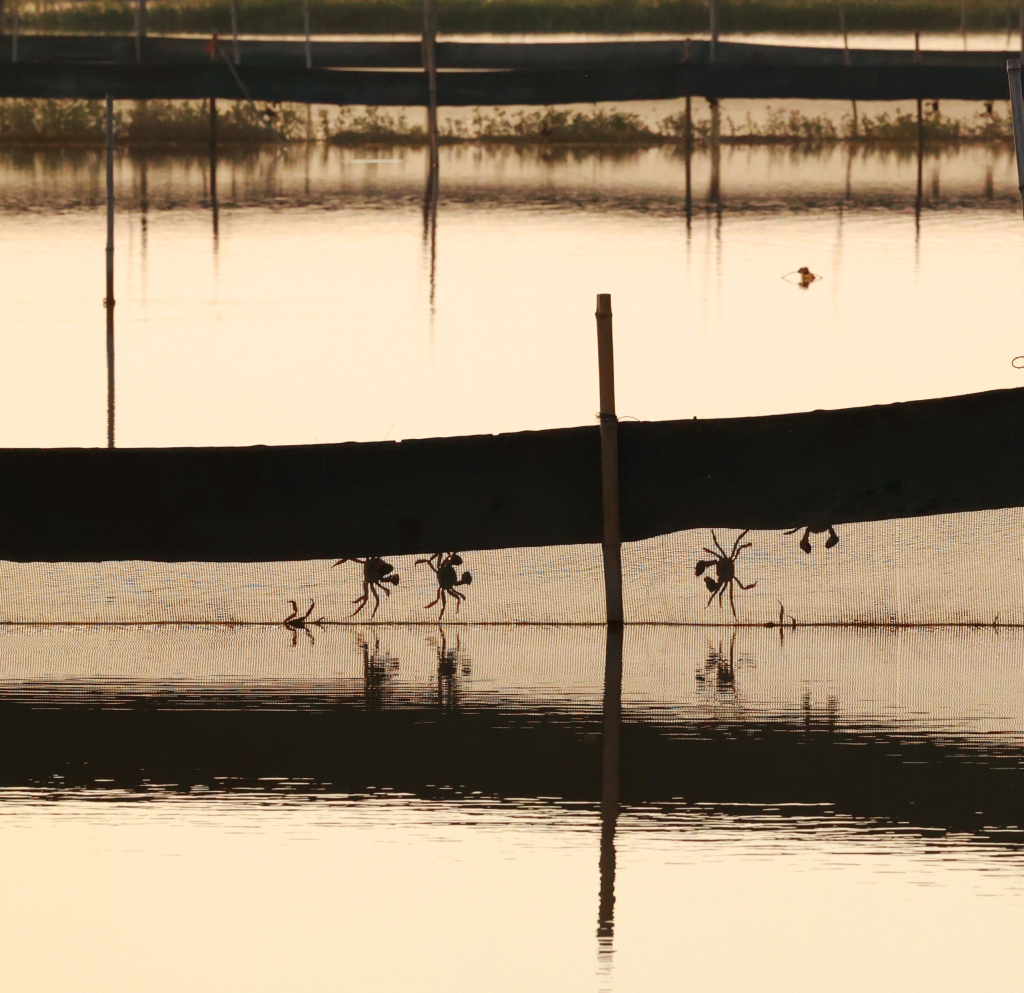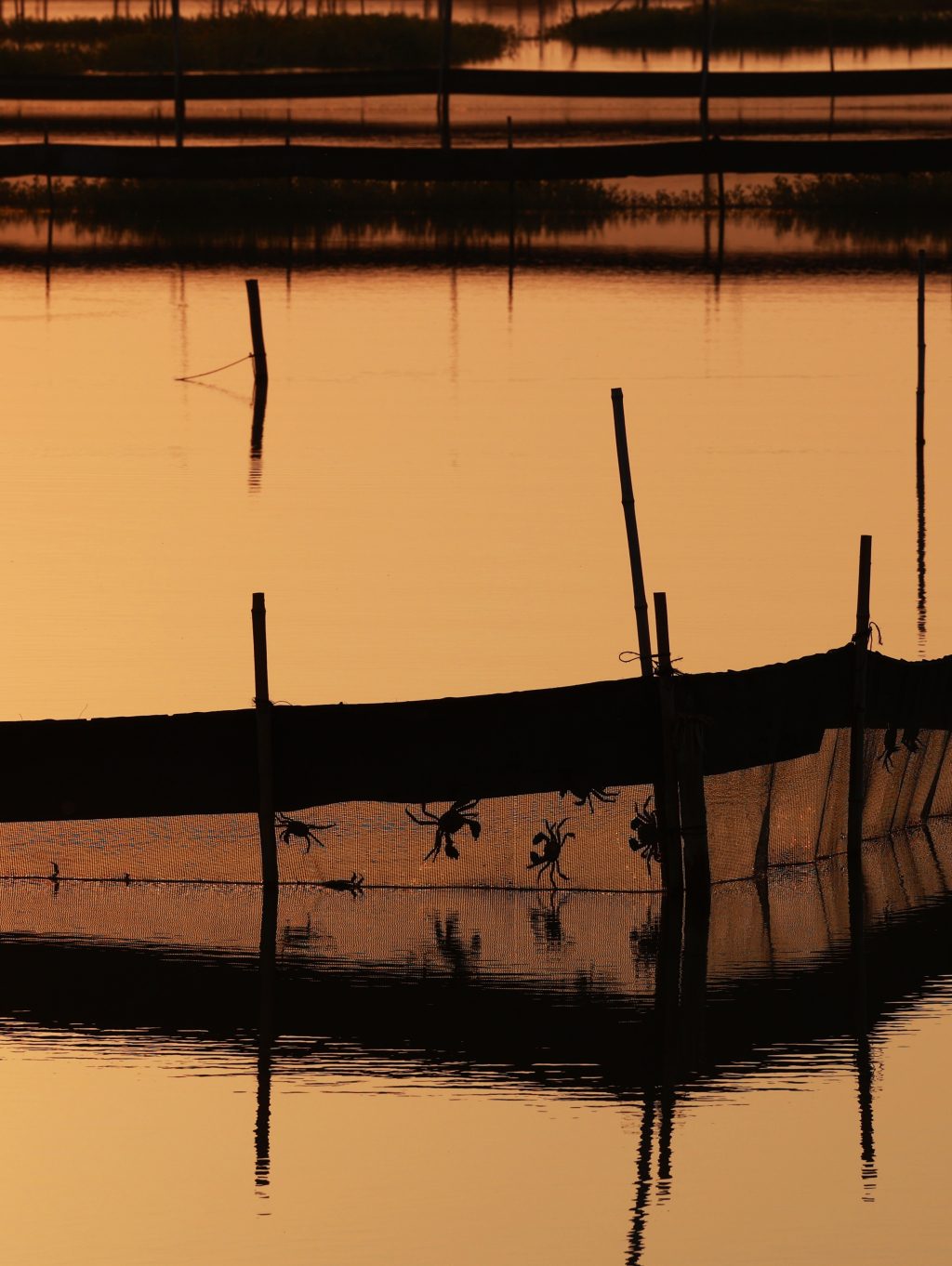蟹塘剪影,2022年10月22日拍摄于中堡镇沙湾村。